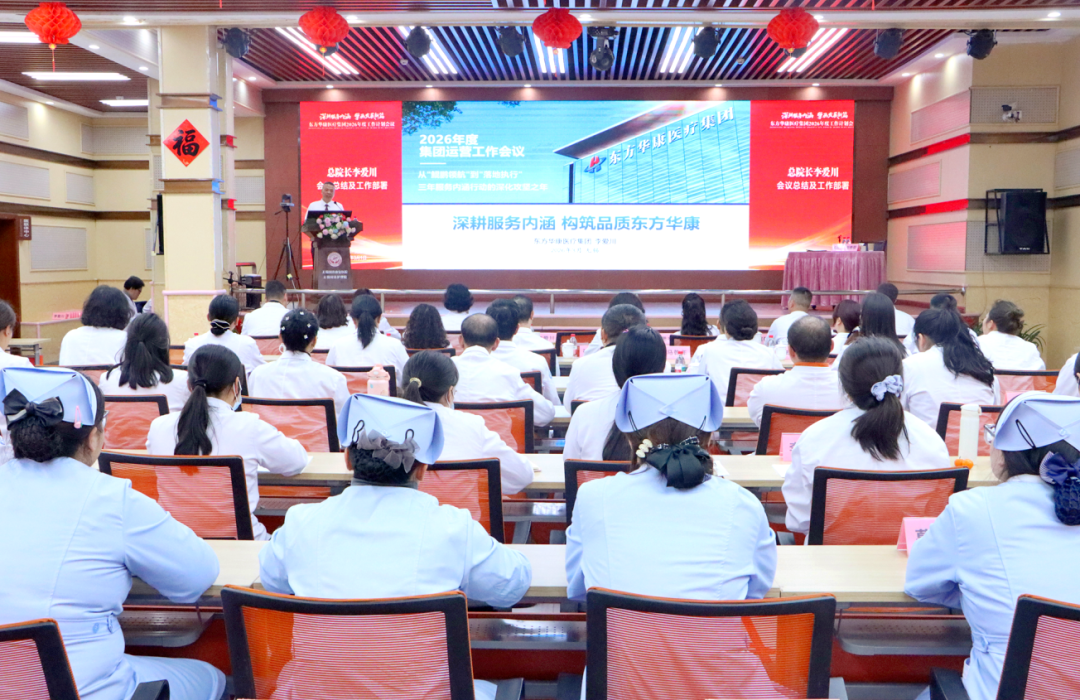 2026年3月1日,东方华康医疗集团2026年度工作计划会议在我院隆重召开。集团总裁、总院长李爱川,各条线管理总监,旗下各医疗机构院委会成员及医院全体中层管理干部齐聚现场,集团外省市机构中层干部通过视频同步参会,共商集团及旗下医院2026年发展规划,明确战略方向与行动路径。